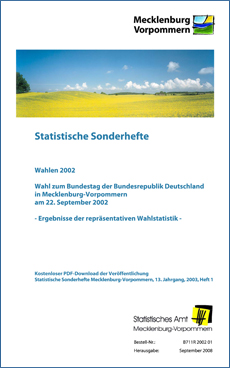 In dem Statistischen Sonderheft sind die endgültigen Wahlergebnisse zur Bundestagswahl 2002 veröffentlicht. Neben den Vorbemerkungen mit Erläuterungen zu Methodik und Begriffen, der Übersicht der teilnehmenden Parteien und einer Wahlkreisbeschreibung werden die Wahlergebnisse nach Wahlkreisen, kreisfreien Städten/Landkreisen, Gemeinden und als Landesergebnis tabellarisch und grafisch dargestellt.
